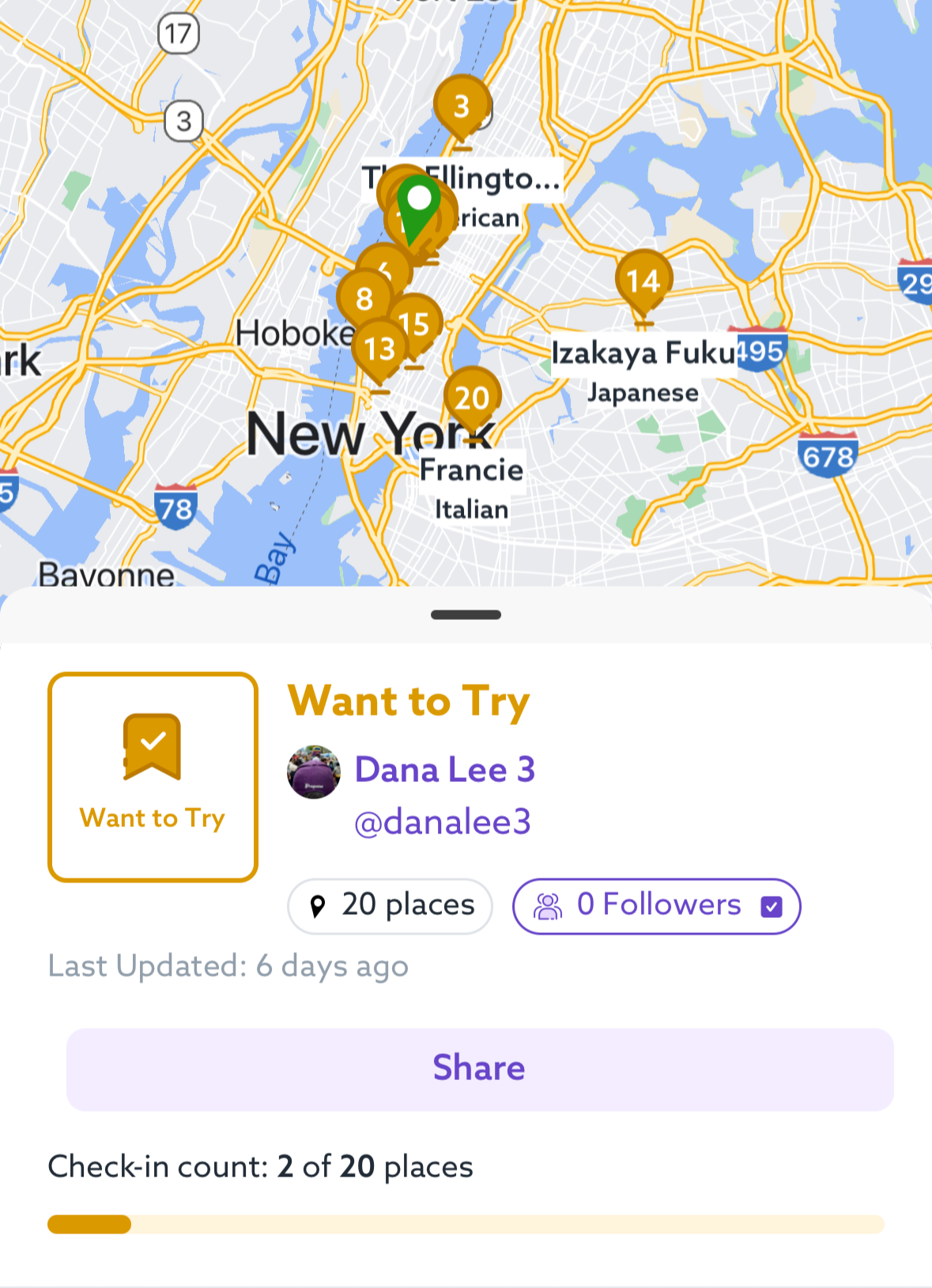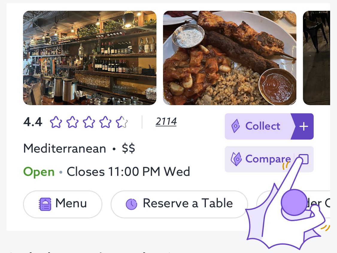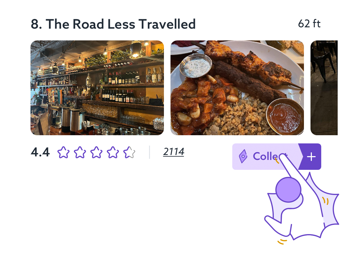 It’s easy to add places you want to remember. Just tap to add to your "Want to Try" album … or any custom album you’ve created.